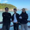 The image features a person wearing a Guy Fawkes mask and a dark hooded outfit, standing in a dimly lit room filled with computer equipment. They are holding what appears to be a firearm, adding a sense of tension and mystery. The room is illuminated by RGB lighting from the desktop setup, which includes multiple monitors—one displaying a software interface possibly related to 3D modeling or game development, and another showing a red-themed application or game. A small statue, likely a Buddha figure, sits atop the computer case under a glowing circular light. The windows in the background show signs of condensation, contributing to the moody atmosphere. The overall scene evokes themes of anonymity, digital immersion, and potential threat.