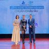 The photo shows a nighttime outdoor setting by a lakeside or riverbank. In the foreground, there is a plastic table marked with the number 36, holding a cup of iced coffee, another drink cup, a red lighter, and a small black box. Part of a person’s arm and leg can be seen near the table. In the background, there are people sitting by the water, possibly fishing, as fishing rods are visible extending over the dark, reflective surface of the water. Trees and buildings with lights create a calm, dimly lit atmosphere. ©King and McGaw
